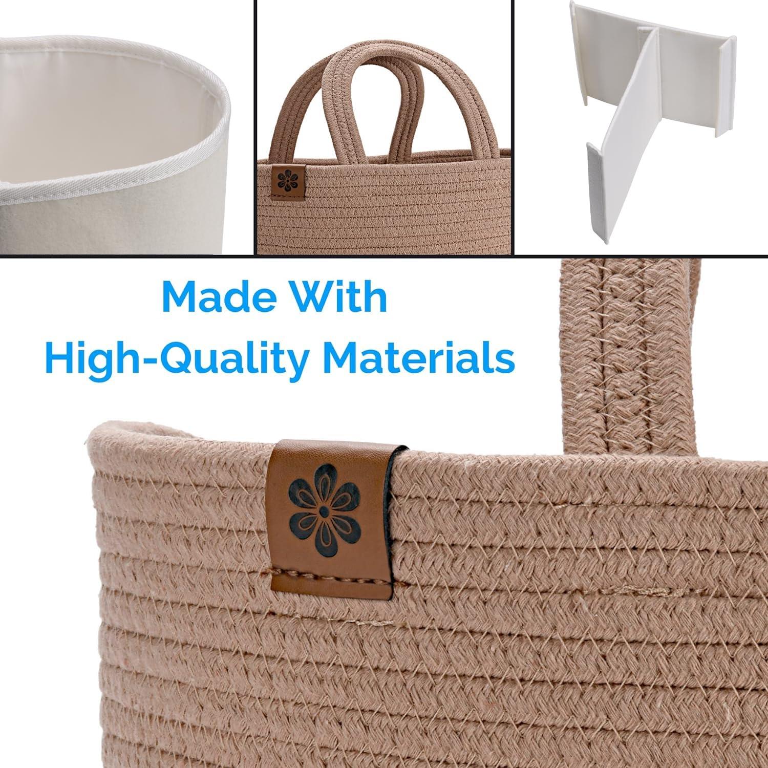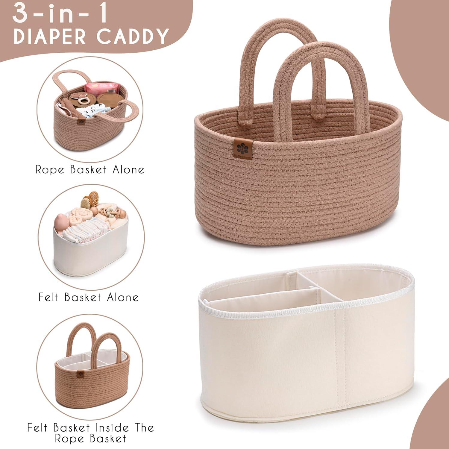 2-in-1 BABY CADDY ORGANIZER OFFERS MAXIMUM VERSATILITY: The felt caddy can be used separately or placed inside the cotton rope diaper caddy for added protection. Perfect to store newborn essentials, baby stuff, baby items and baby necessities