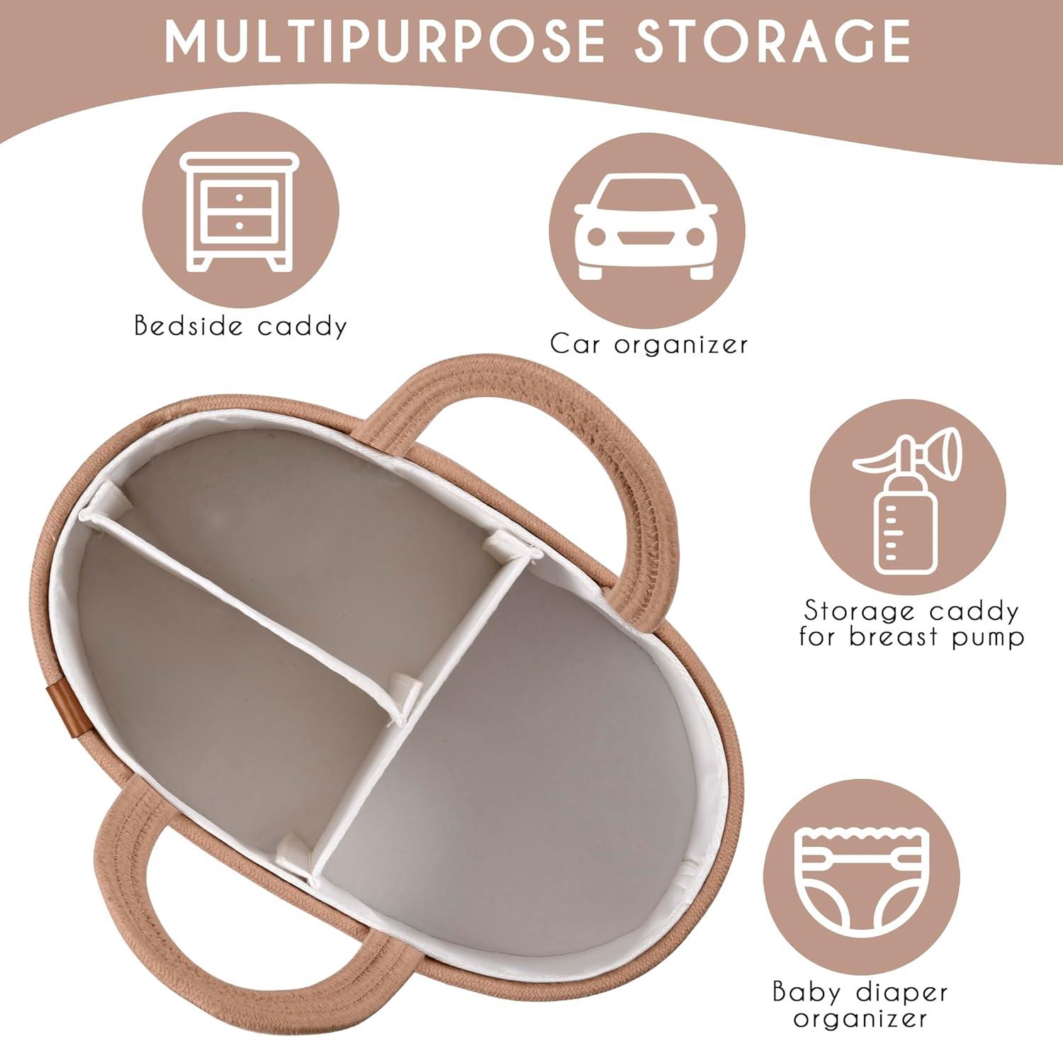 STYLISH & LARGE DIAPER CADDY BASKET SET: The neutral color and modern design of this diaper organizer caddy will complement any nursery room. Either use as car diaper caddy or toy storage, your baby essentials will be easily accessible.