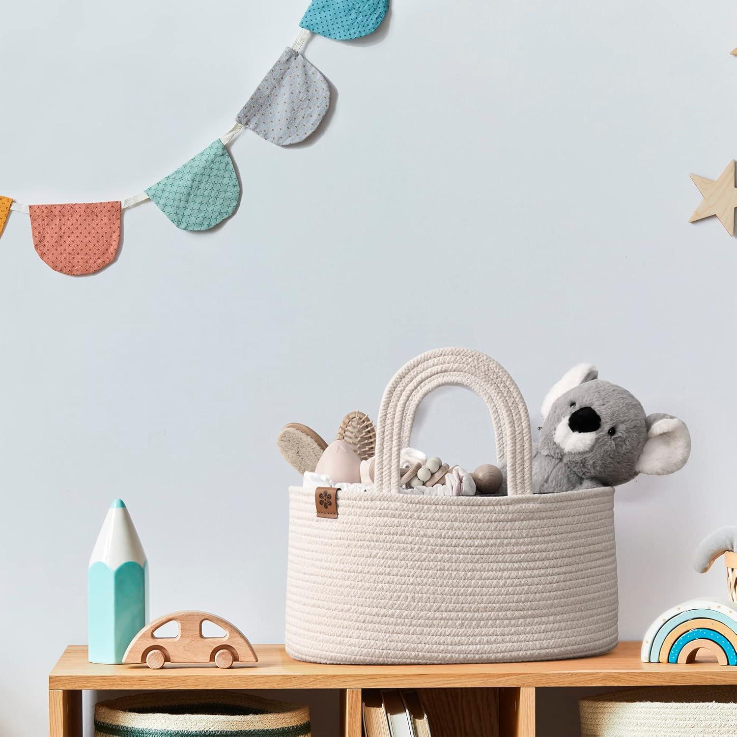 STYLISH & LARGE DIAPER CADDY BASKET SET: The neutral color and modern design of this diaper organizer caddy will complement any nursery room. Either use as car diaper caddy or toy storage, your baby essentials will be easily accessible.