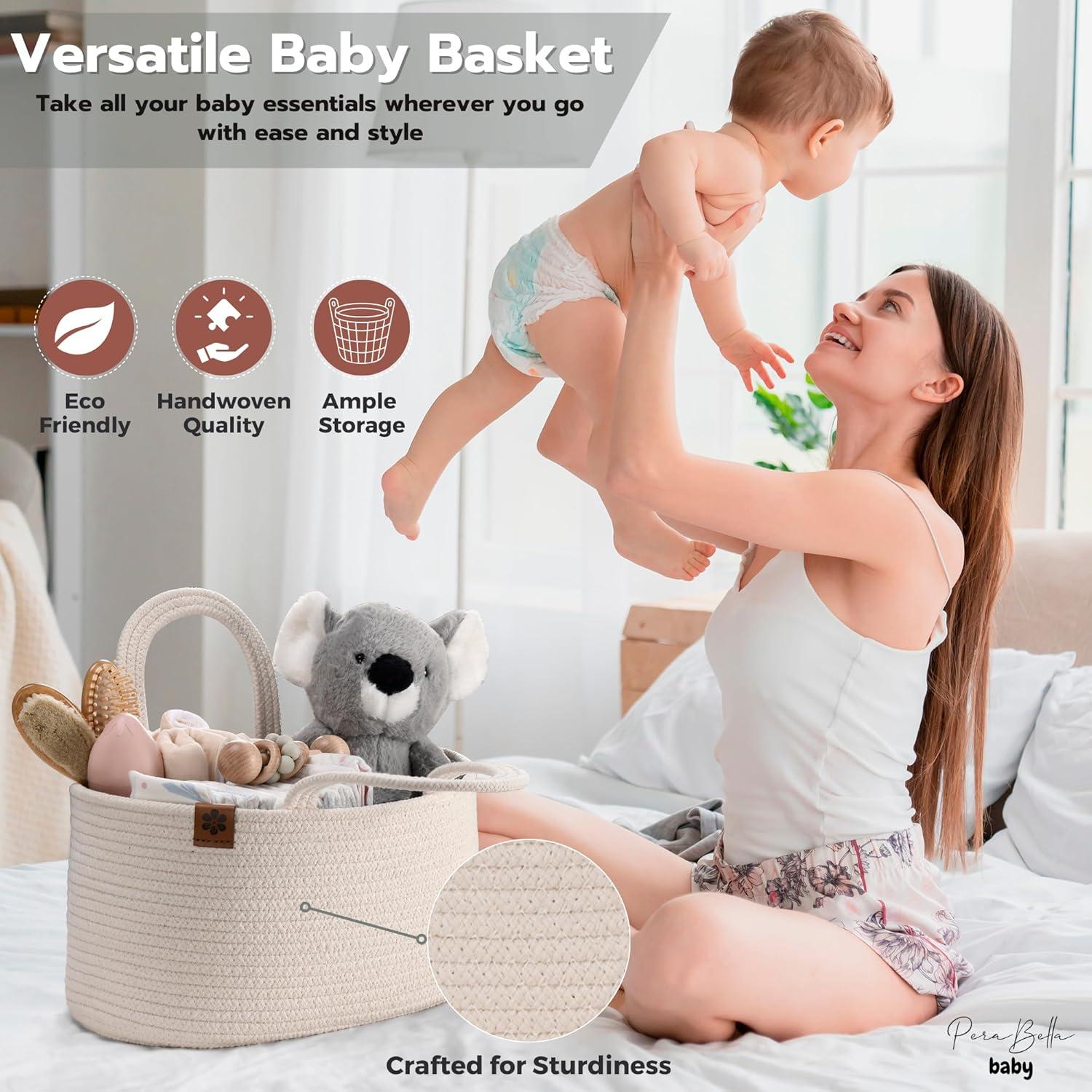 MULTIPURPOSE USE: Use as a baby basket, baby organizer for nursery, nursery organizers and storage, baby changing basket, diaper bin, baby storage organizer, diaper tote, diaper holder organizer, diaper stacker, diaper cady, diaper caddy cart