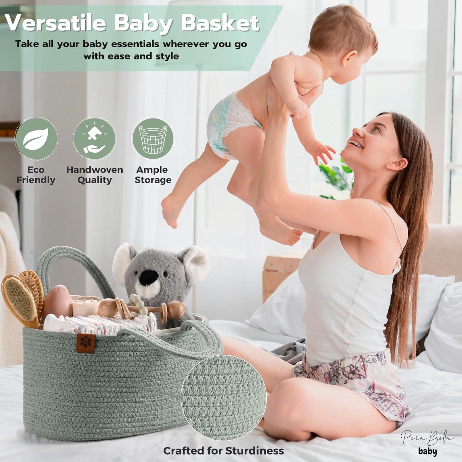 MULTIPURPOSE USE: Use as a baby basket, baby organizer for nursery, nursery organizers and storage, baby changing basket, diaper bin, baby storage organizer, diaper tote, diaper holder organizer, diaper stackers & caddies, foldable diaper caddy cart