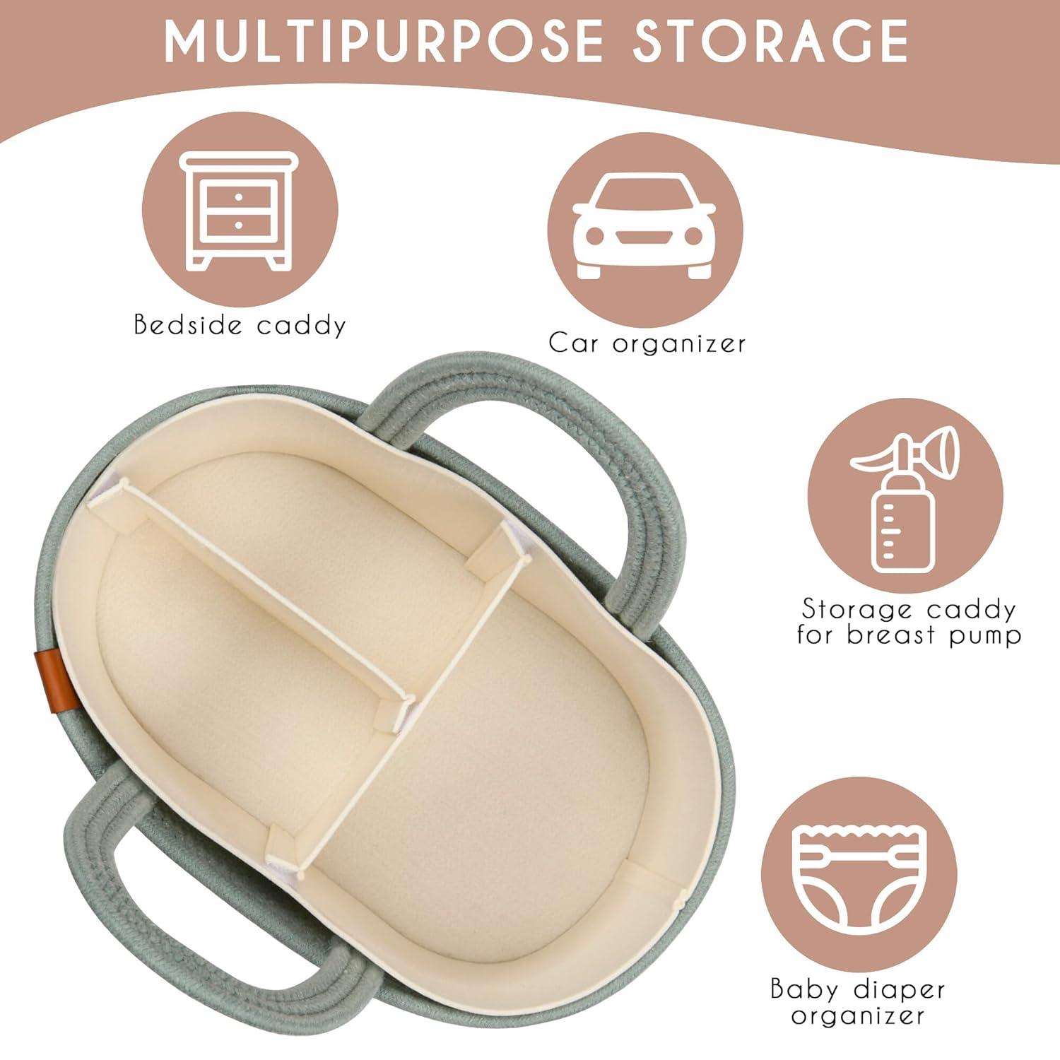 IDEAL BABY SHOWER GIFT: Our bassinet diaper caddy for boy and girl makes a wonderful premium baby diaper caddy gift. Our versatile baby changing table organizer can be used as baby storage basket, baby laundry basket. Comes with 2 removable dividers.