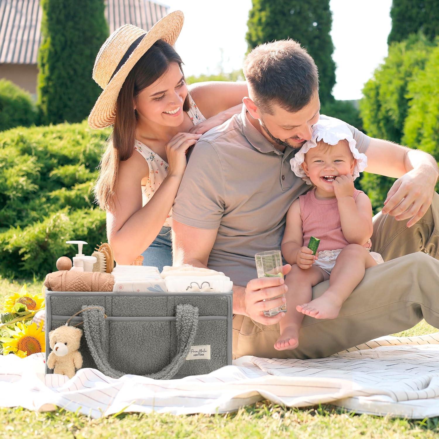 PeraBella Baby Diaper Caddy Organizer with Handle, Boy & Girl Shower Gift Basket, Portable Diaper Storage Basket Bin for Wipes, Newborn Baby Essentials Registry Search Must Haves, Car Caddy Organizer(Gray)