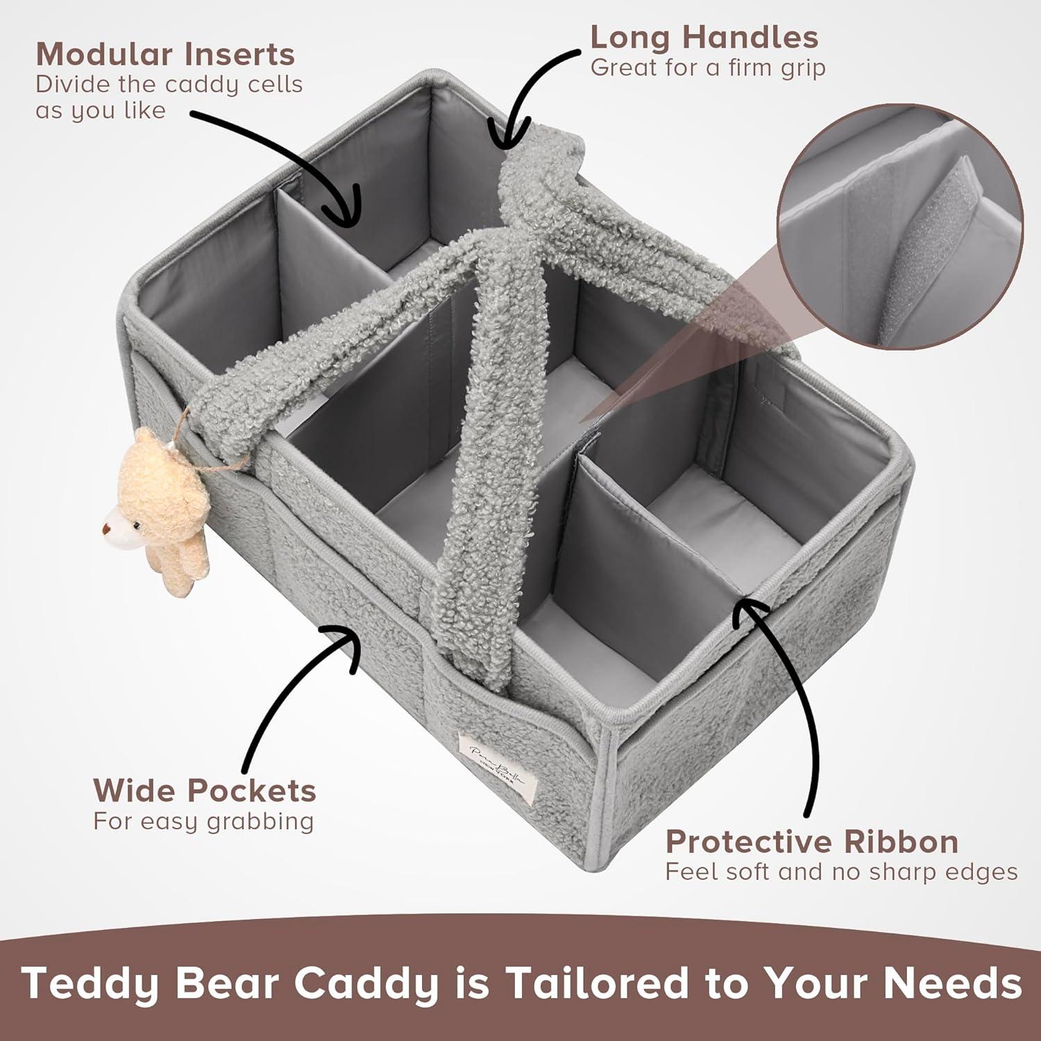 BONUS TEDDY BEAR CHARM AND LUXURIOUS PLUSH SHERPA EXTERIOR : Crafted with a premium plush sherpa exterior, our Baby Diaper Caddy feels as cozy as it looks. Each caddy comes with an adorable teddy bear charm, adding a touch of delight. It's a small detail that makes a big impression, perfect for gifting