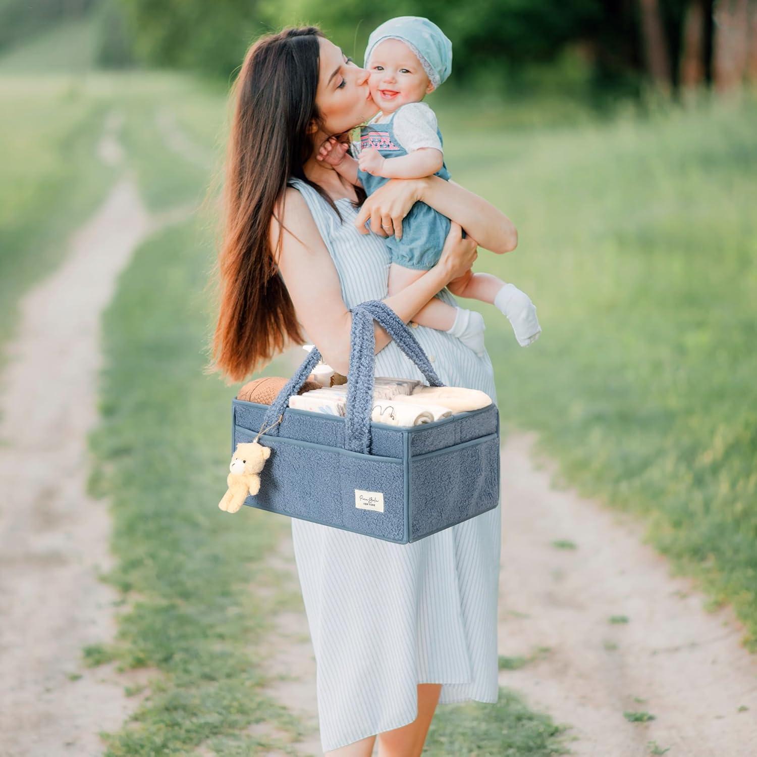 MULTIPURPOSE USE: Use as a baby basket, baby organizer for nursery, nursery organizers and storage, baby changing basket, diaper bin, baby storage organizer, diaper tote, diaper holder organizer, diaper stacker, diaper caddy, diaper caddy cart. Store your baby’s wipes, baby bibs, creams, toys, swaddles and more baby boy stuff and baby girl stuff