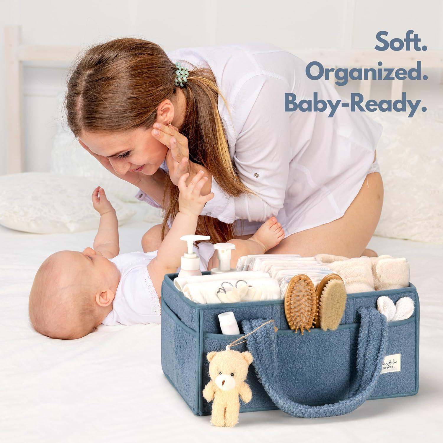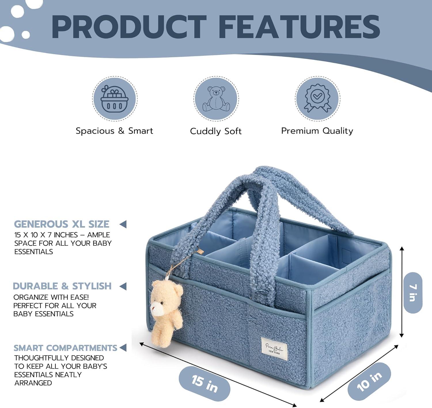 BONUS TEDDY BEAR CHARM AND LUXURIOUS PLUSH SHERPA EXTERIOR : Crafted with a premium plush sherpa exterior, our Baby Diaper Caddy feels as cozy as it looks. Each caddy comes with an adorable teddy bear charm, adding a touch of delight. It's a small detail that makes a big impression, perfect for gifting