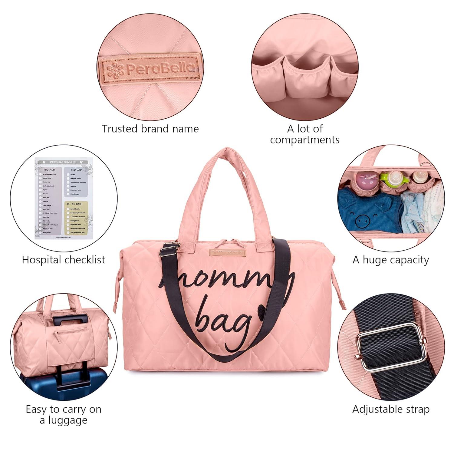 🚗 IDEAL BABY TRAVEL BAG: PeraBella's lightweight, quilted mom bag for hospital offers hands-free ease. Large interior fits everything from diapers to hospital essentials and the extra wide opening makes it easy to find pregnancy essentials quickly.