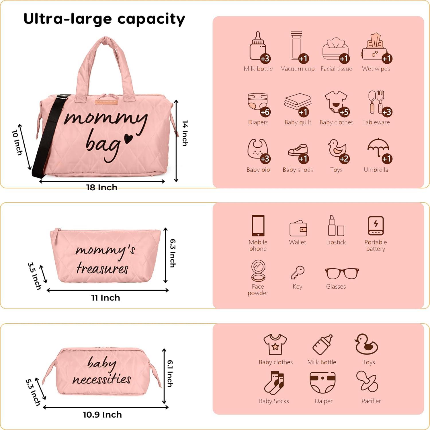💦 WATERPROOF AND DURABLE MOM BAG: The water resistant outer fabric make for the clean and mess-free organization for all necessities in our maternity bags for the hospital mom and baby. This extra large diaper bag is spacious enough to hold most of baby boy girl stuff organized.