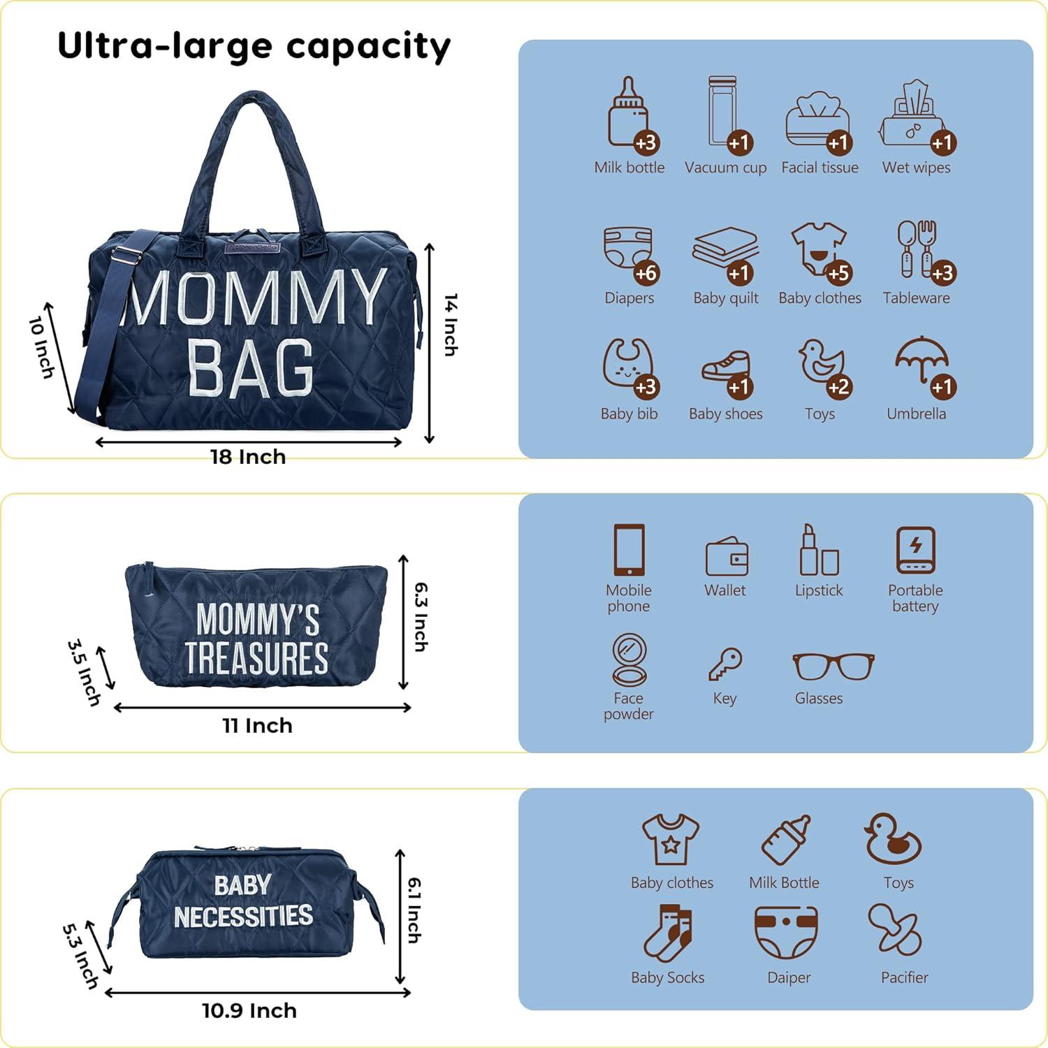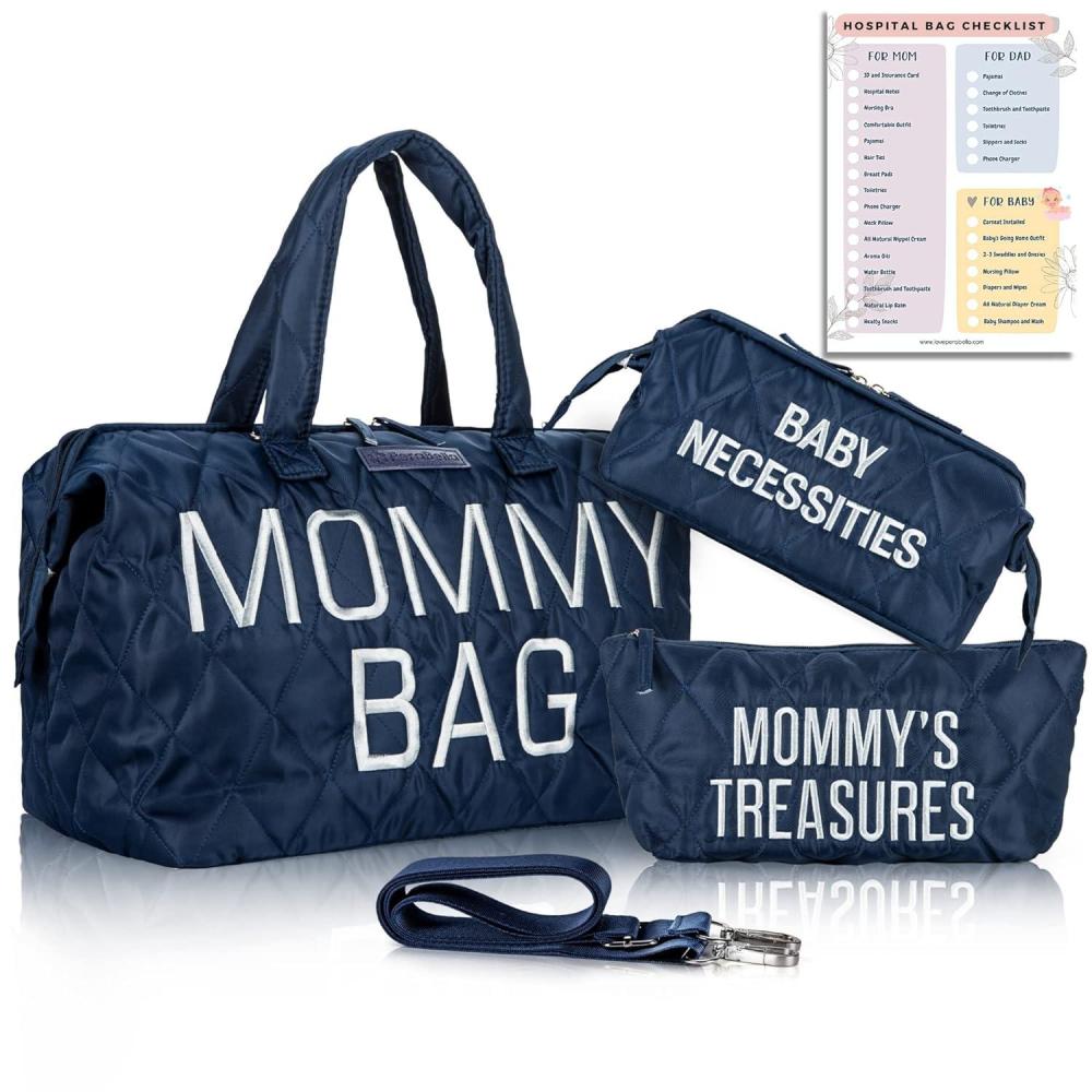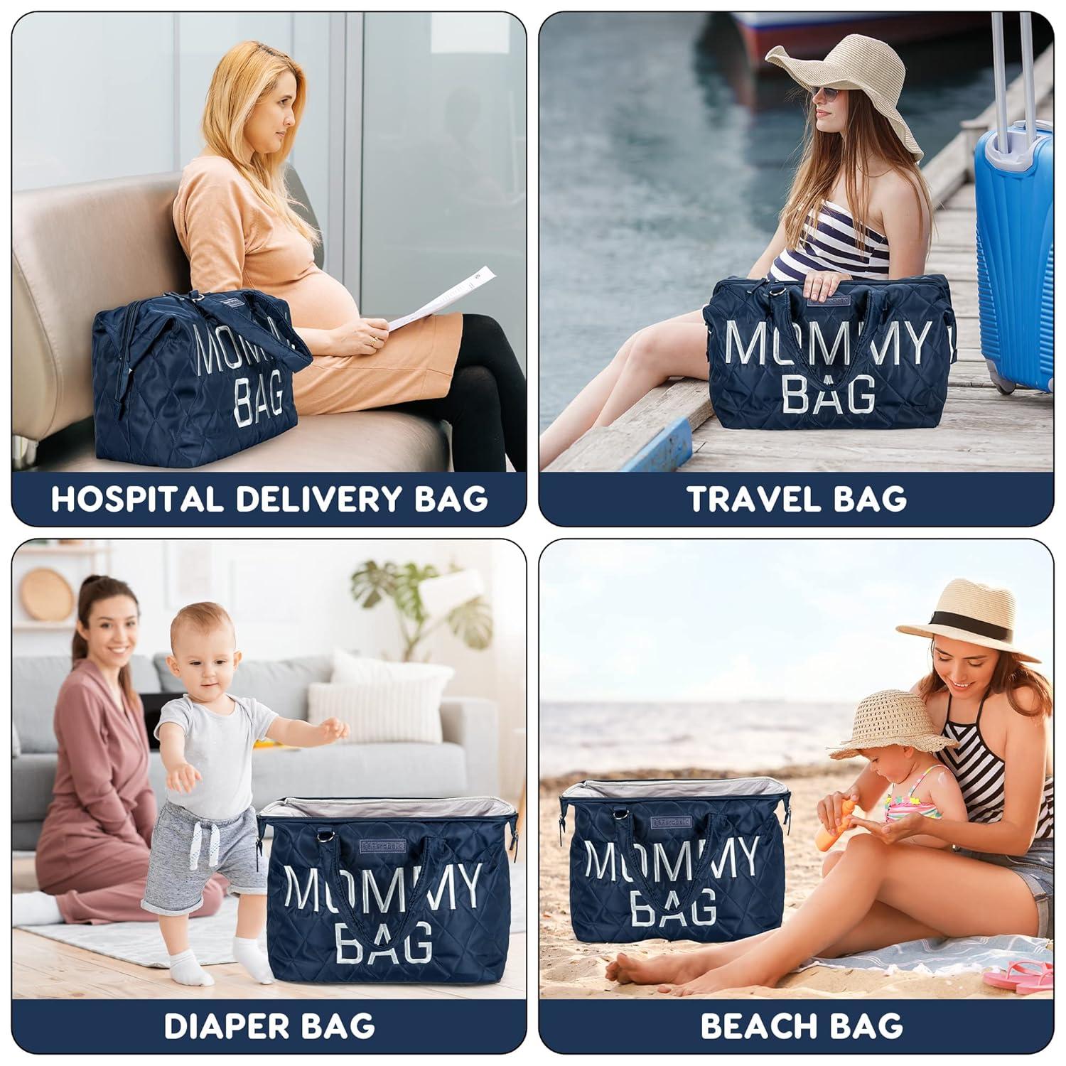 💜 LARGE CAPACITY MOM HOSPITAL BAG FOR LABOR AND DELIVERY: All in one mommy hospital bag design includes a mommy bag, a hospital bag checklist, an organizing pouch and a shoulder strap. Lots of space for hospital essentials for labor and delivery. Extra Large Diaper Tote Bag for New Mom Essentials