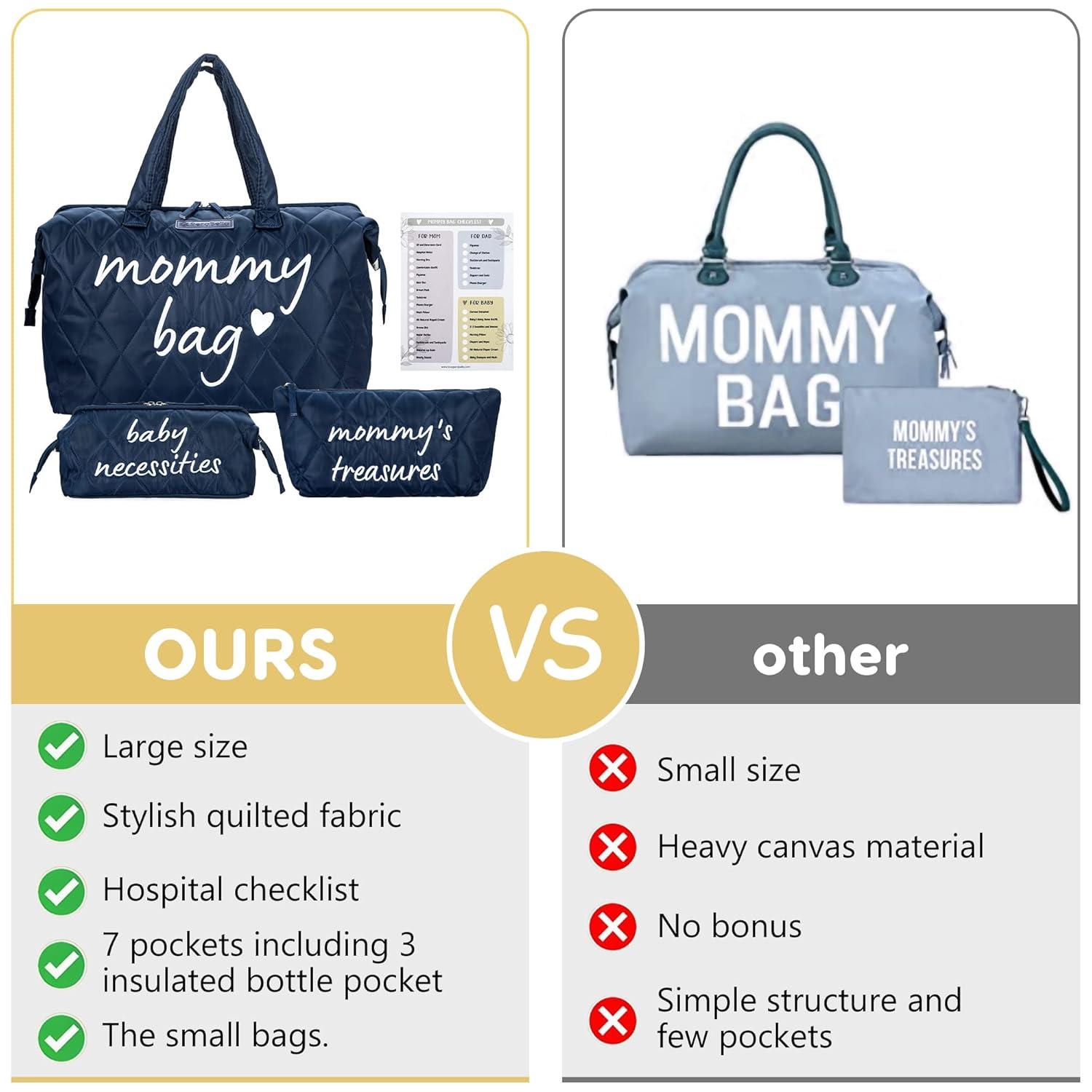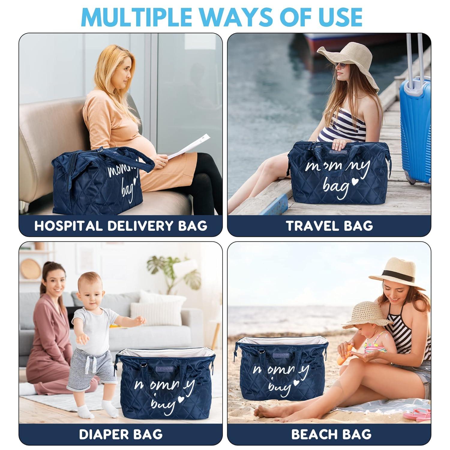 💜 LARGE CAPACITY MOM HOSPITAL BAG FOR LABOR AND DELIVERY: All-in-one stylish mommy hospital bag design includes 1 multiple pockets mommy bag, 1 hospital bag checklist, 1 organizing pouch for maternity essentials and an adjustable shoulder strap. our moms-to-be bag is spacious, providing plenty of room. Extra Large Diaper Tote Bag for New Mom Essentials.