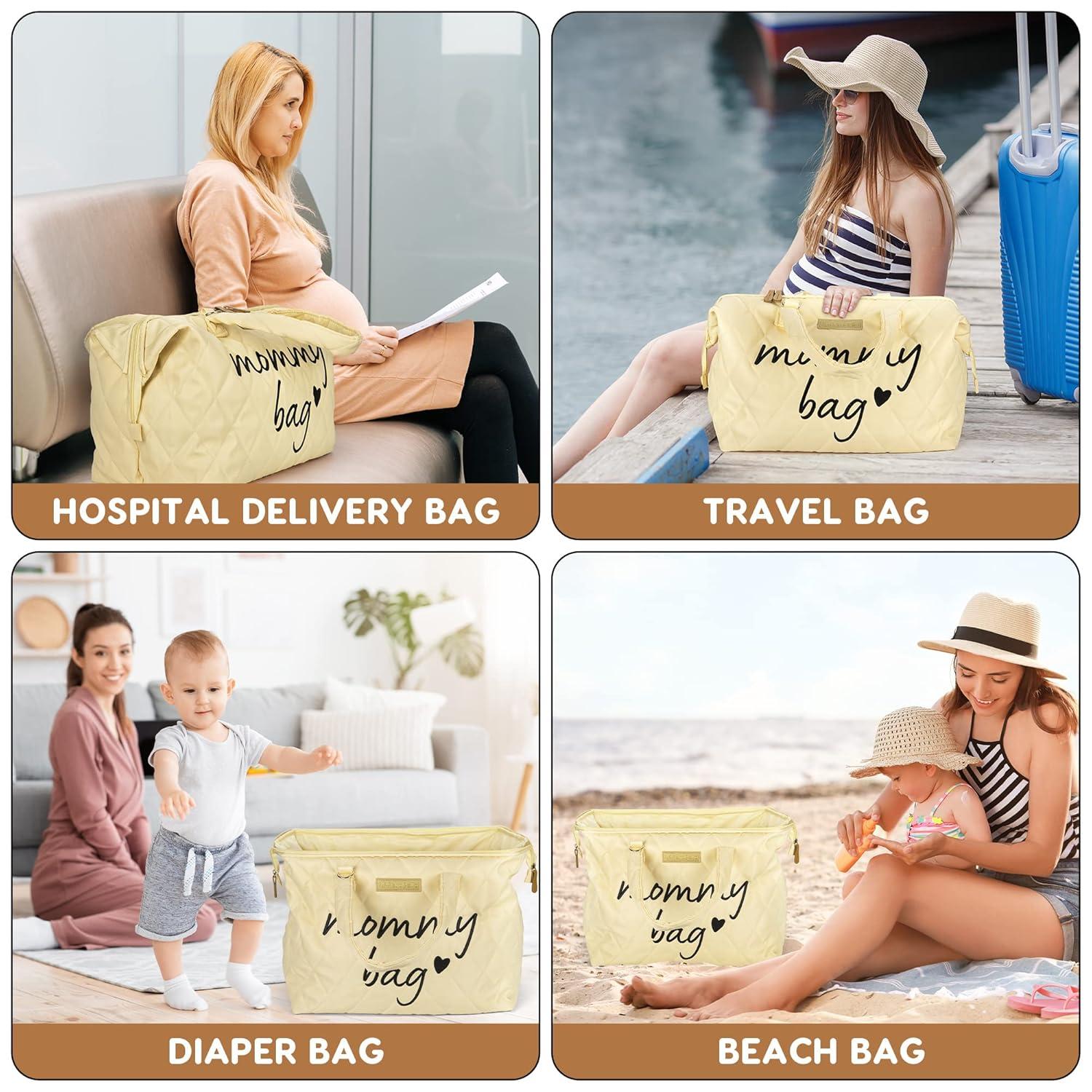 💜 LARGE CAPACITY MOM HOSPITAL BAG FOR LABOR AND DELIVERY: All in one mommy hospital bag design includes a mommy bag, a hospital bag checklist, an organizing pouch and a shoulder strap. Lots of space for hospital essentials for labor and delivery. Extra Large Diaper Tote Bag for New Mom Essentials