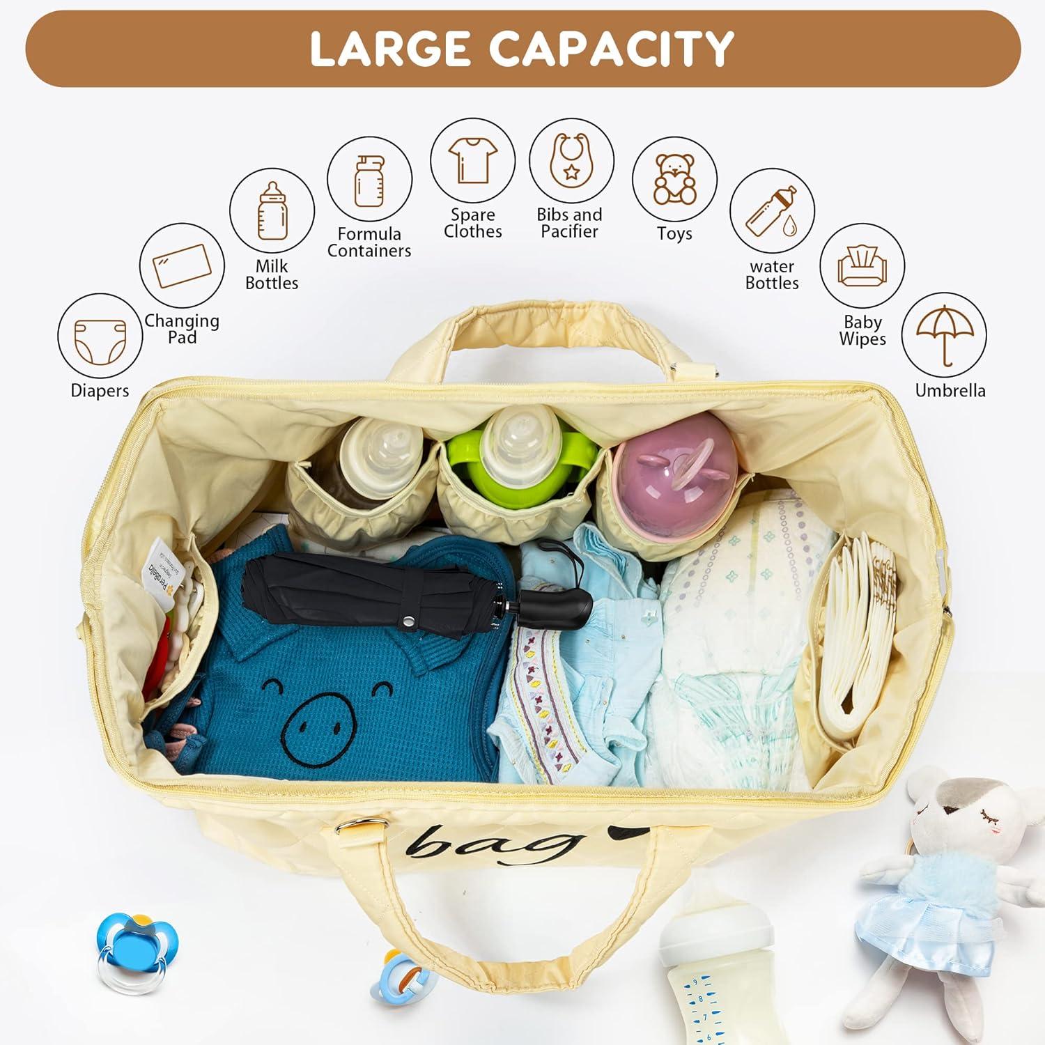 💦 WATERPROOF AND DURABLE MOM BAG: The water resistant outer fabric make for the clean and mess-free organization for all necessities in our maternity bags for the hospital mom and baby. This extra large diaper bag is spacious enough to hold most of baby boy girl stuff organized.