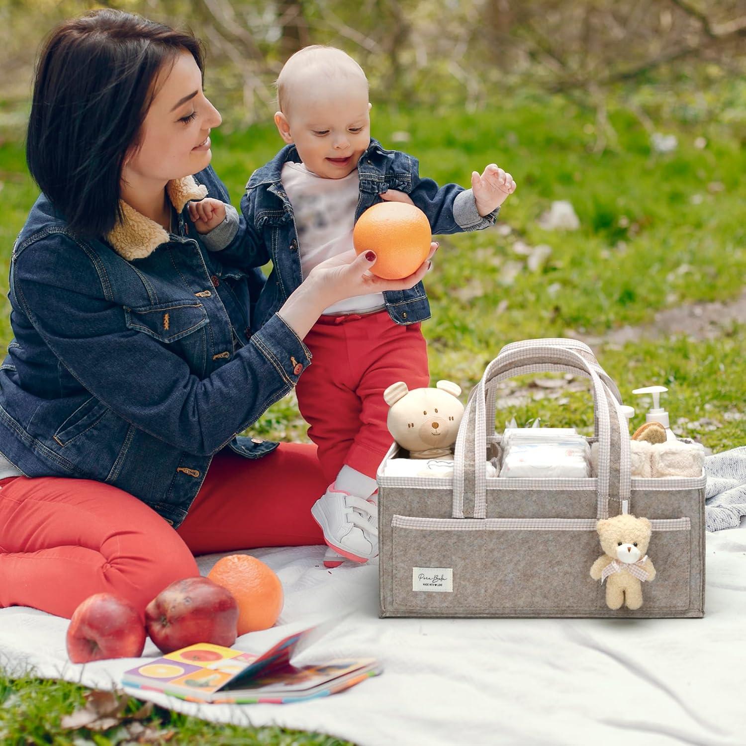 LIGHTWEIGHT & MULTI-PURPOSE: This baby diaper caddy organizer with handle is perfect for nursery storage, car caddy, or bedside diaper changing station. Store diapers, wipes, breast pump, baby bath items, or toys—ideal for travel and everyday use as baby room organizer and storage