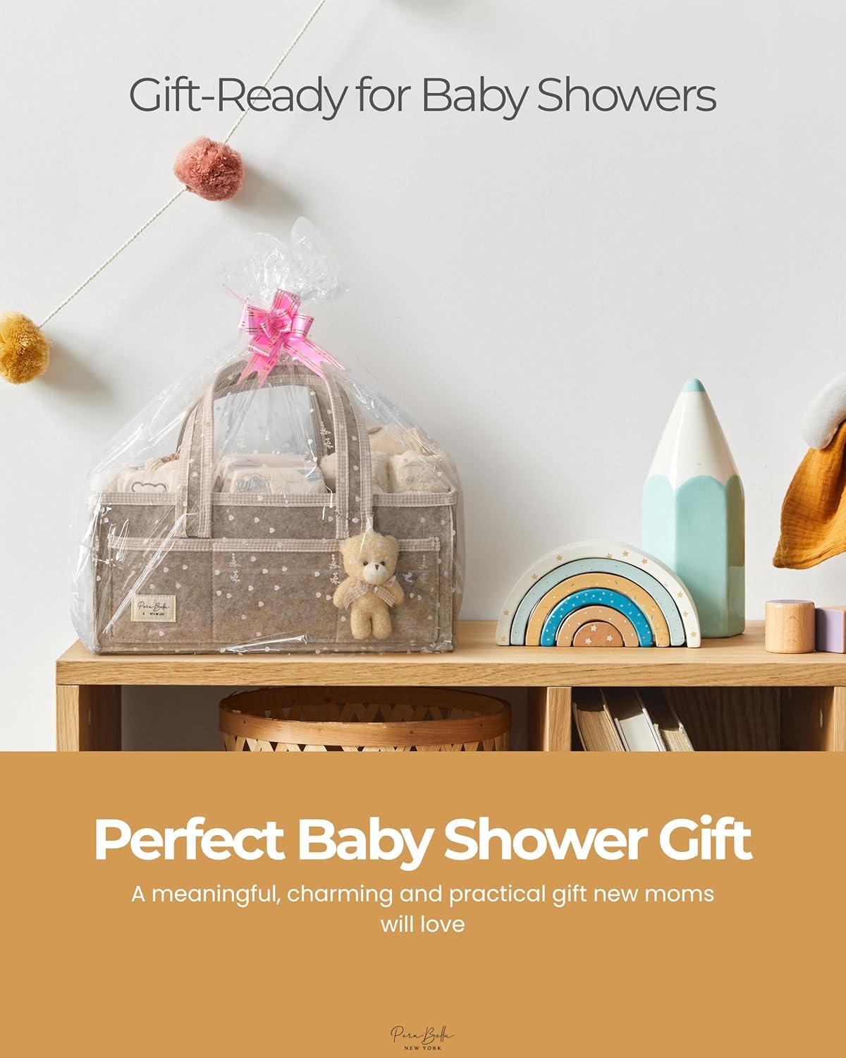 MAXIMIZE STORAGE SPACE: Our 16x10x7 inch baby diaper caddy organizer holds all nursery must-haves—diapers, wipes, baby bath items, and mom essentials. Use it as a baby bath caddy, changing table organizer, or newborn gift basket for new moms.