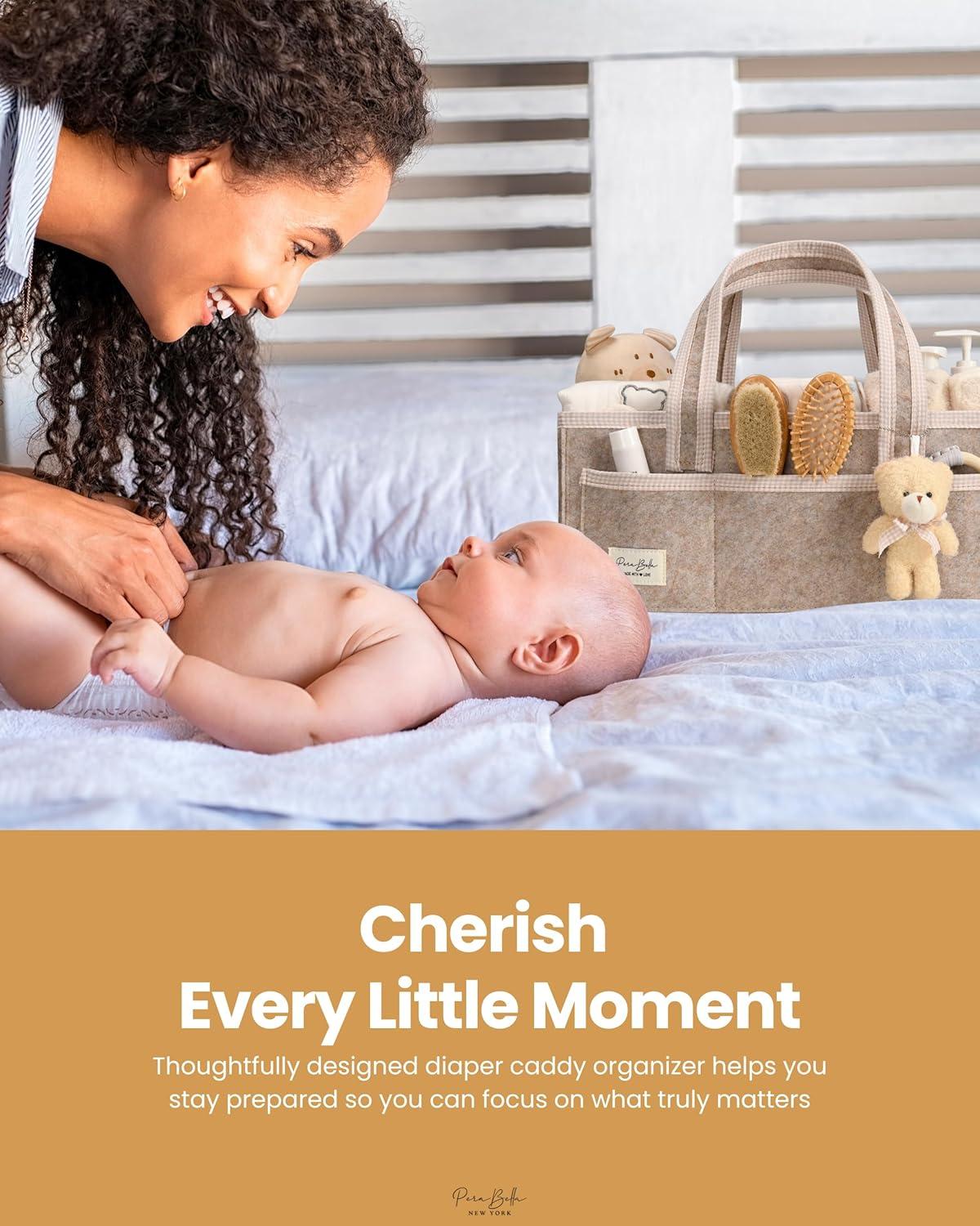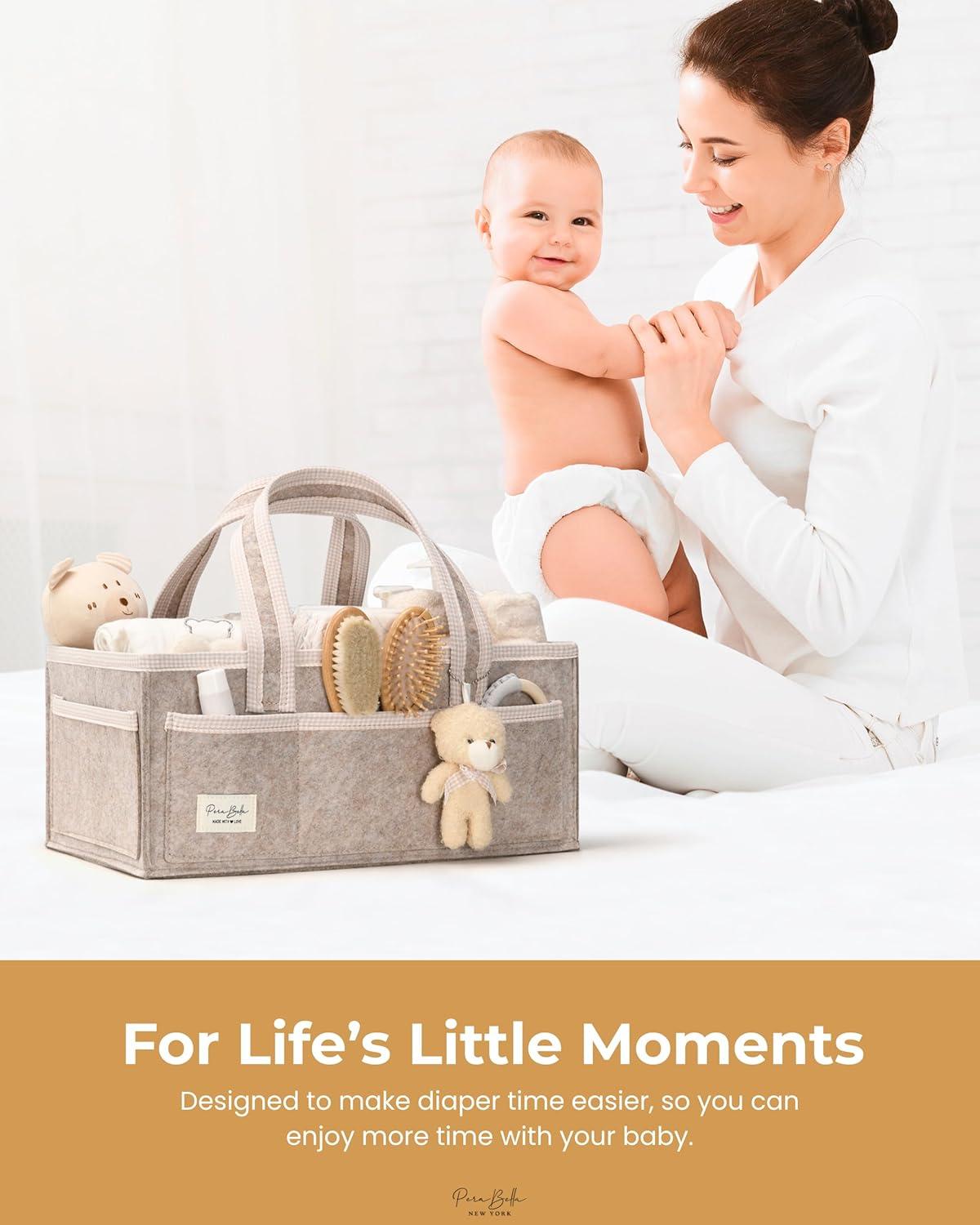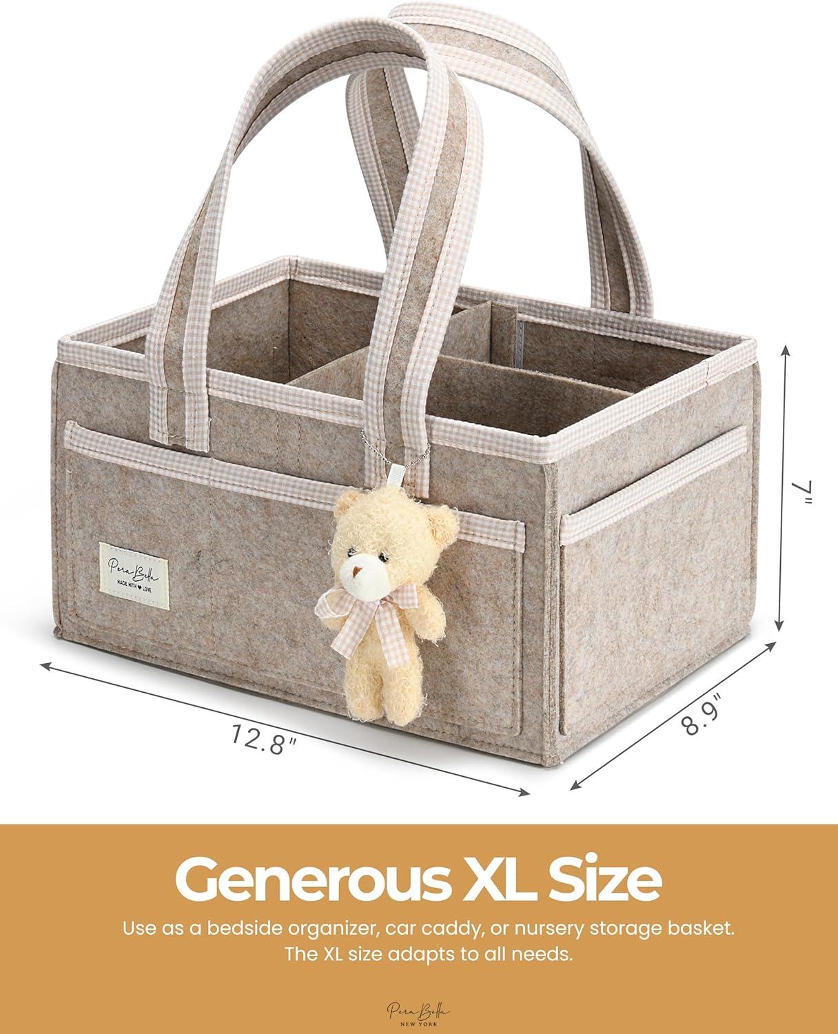 PeraBella XL Diaper Caddy Organizer With Handle, Baby Shower Gifts Basket Bag, Registry Search Must Haves Items, Newborn Girl Boy Nursery Storage Organizer, Baby Bag Essentials, Car Diaper Caddy Cart(Oatmeal)